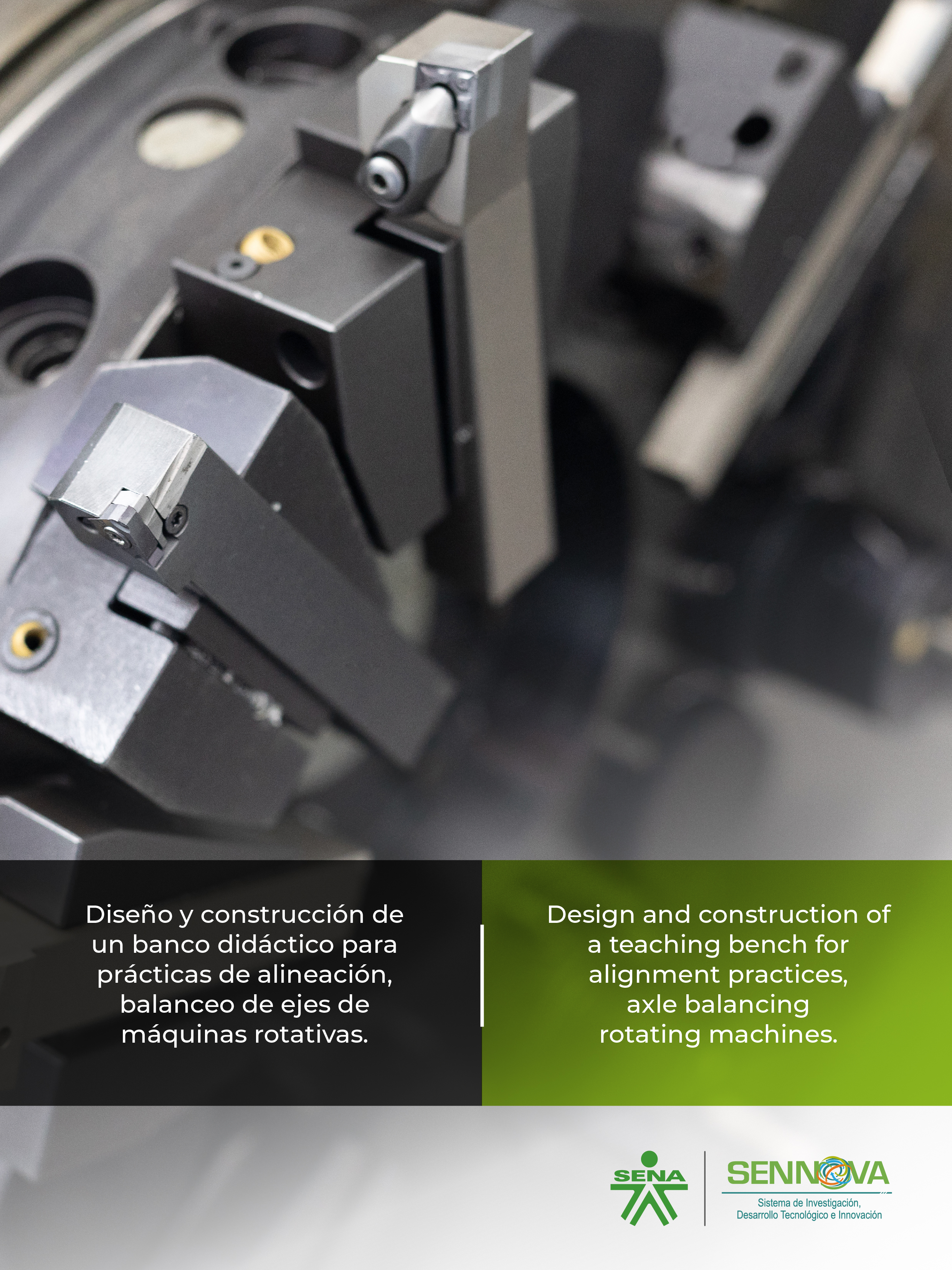 Este trabajo presenta el diseño y construcción de un banco didáctico para prácticas de alineación y balanceo de ejes en máquinas rotativas, con el fin de reforzar y complementar el conocimiento teórico practico de los aprendices en formación de tecnología en mantenimiento mecánico y electromecánico industrial del SENA CDITI en Dosquebradas. Se especifican los diferentes métodos de alineación en ejes de máquinas y los métodos de balanceo de rotores. Se detalla el proceso metodológico para el desarrollo del concepto y el proceso de fabricación de los componentes mecánicos de los sistemas, tanto para las prácticas de alineación como para el balanceo en el taller de mantenimiento. El esquema del banco didáctico se realizó con el software SOLIDWORKS y la manufactura fue ejecutada por aprendices de mantenimiento mecánico industrial, mantenimiento electromecánico industrial y desarrollo de componentes mecánicos para su manufactura en máquinas CNC.