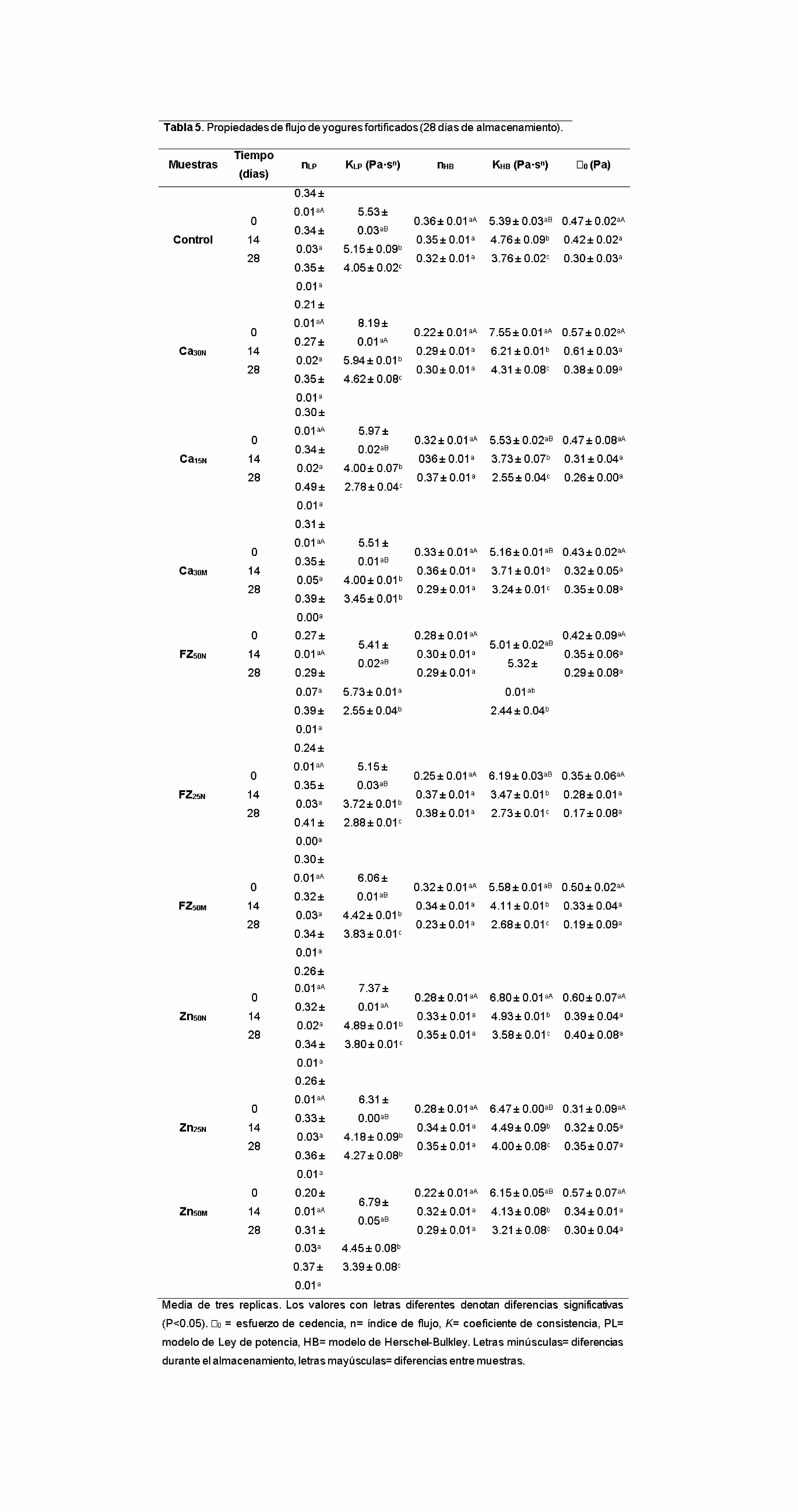Aportela-Palacios, A., Sosa-Morales, M.E., y Vélez-Ruiz, J.F. (2005). Rheological and physicochemical behavior of fortified yogur, with fiber and calcium. Journal of Texture Studies, 36, 333-349.