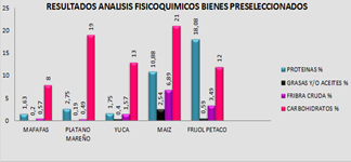 Inmersas en la cuenca media del rio Otún Risaralda – Colombia están las Escuelas Agroecológicas ECAS, con una población mayoritariamente campesina, la cual presenta un alto riesgo de vulnerabilidad en aspectos nutricionales, esta condición permite plantear estrategias alimentarias que subsanen algunos de estos requerimientos y por ende se aprovechen al máximo los recursos agroalimentarios con los que cuenta la comunidad en su entorno. En Colombia y en especial en la zona cafetera se vienen implementando políticas que permitan adquirir unos niveles fundamentales en la seguridad alimentaria de comunidades potencialmente afectadas por la dificultad en la disponibilidad, el acceso, la cantidad, la calidad e inocuidad de alimentos, dentro de esta perspectiva el objetivo del estudio se enfoca en la elaboración de un producto que pueda tener un alto valor nutricional, que sea aceptado organolépticamente por los niños y adolescentes de las ECAS, pero que a su vez permita revalorizar o repotenciar los bienes agroalimentarios autóctonos de la zona de estudio, en el marco de los productos agrícolas reconocidos por los campesinos se destacaron 3 después de los análisis bromatológicos y microbiológicos: el maíz, la yuca y el fríjol petaco; estos presentaron un valor nutricional significativo; con ellos se desarrolló una alternativa gastronómica tipo Snacks dulces (galletas), utilizando mezclas de 2 de los 3 bienes escogidos en proporciones 25% - 75%, 50% -50% y 75%- 25% (frijol-maíz y frijol-yuca) en cada uno de los ensayos realizados. El proyecto se basa en una investigación aplicada implementado una metodología exploratoria y descriptiva la cual consta de un enfoque mixto (cualitativo – cuantitativo). Los análisis y la recolección de los datos, permitieron obtener los siguientes resultados: los mejores productos para la elaboración del Snack son frijol-yuca (25% - 75%) y frijol-maíz (25%-75%), dadas las condiciones nutrimentales de los componentes, organolépticamente la mezcla mejor aceptada fue frijol-yuca (25%-75%).